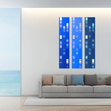 Our latest creation with the patented 24 digit Geni Code. Create unique art pieces inspired by your DNA that can complement your home or office interior. Design inspired by Gel Electrophoresis imaging, the most common laboratory method of visualizing DNA